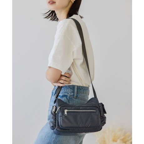 セミマットなパファー素材で仕立てたショルダーバッグ。外ポケットや内ポケットが充実した収納力の高さが魅力的なデザインです。きらりと光るメタルジップがアクセントをプラス。ころんとしたミニマムサイズでどんなスタイルにも合わせやすく、デイリーに活躍するおすすめのアイテムです。※モデル着用画像は、光の当たり具合で色味が違って見える場合がございます。※お使いのモニター環境によって商品の色味が違って見える場合がございます。