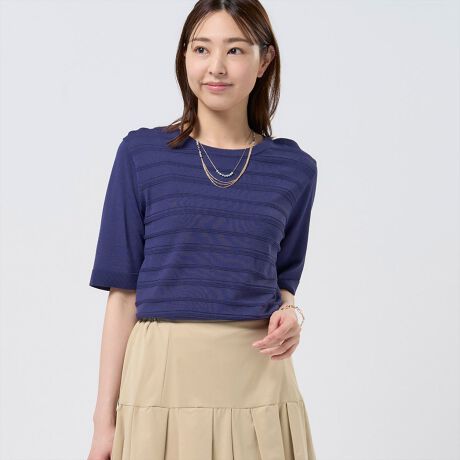 暖かくなる時期に重宝する五分袖は体温調節しやすいアイテム。