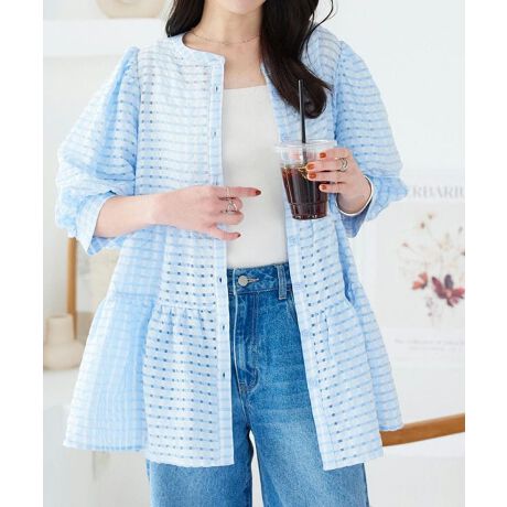 軽やかなシアーチェック素材が魅力のティアードブラウス。ほのかに透けるチェック柄が、華やかで涼しげな印象を与えます。デニムやワイドパンツと合わせてカジュアルに、タイトスカートと合わせてフェミニンにと、多彩なスタイルにマッチする大人可愛いブラウス。春夏のコーディネートを華やかにアップデートしてくれる一着です。