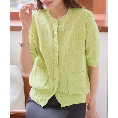 春夏にぴったり軽やかで上品な五分袖ニットカーディガン。