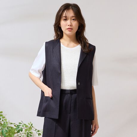 麻の様な素材で作ったジレで、暑い季節もサラッと快適です。
