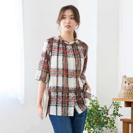 ■元気カラーがアクセントになる、チェック柄ブラウス■