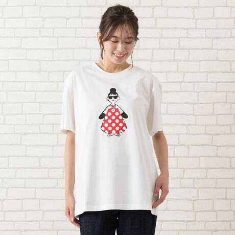 フロントのエマちゃんプリントがポイントになるので、アウター等にインしても存在感を放つ1枚です。