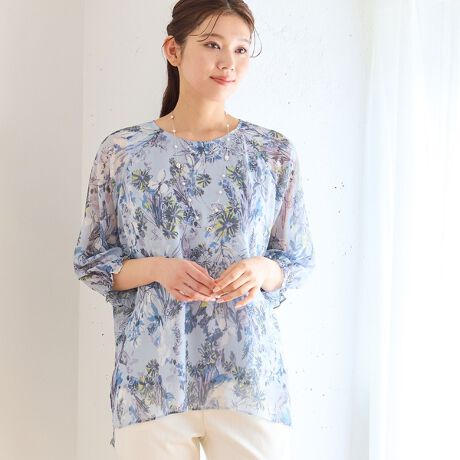 【洗える】シフォン楊柳 フラワーブラウス