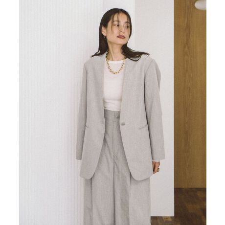 ●ノーカラーデザインとヒップが隠れる長めの丈がスタイリッシュな印象に