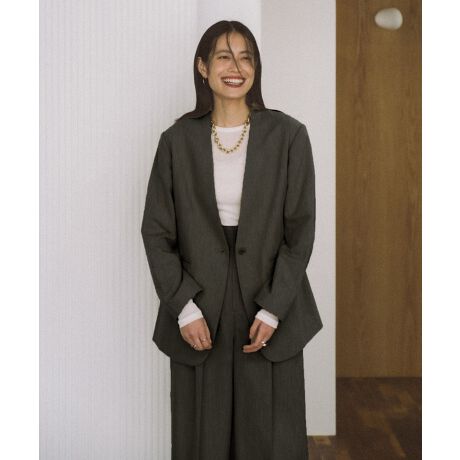 後ろボタン開きノーカラージャケット