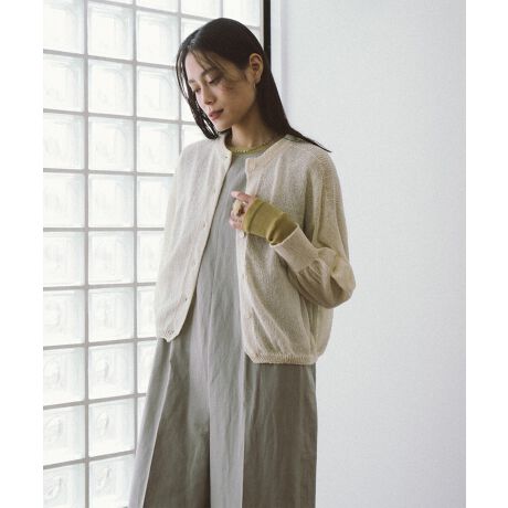 5ゲージで編立て、ざっくりとした表面感が春ニットを代表する一枚。
