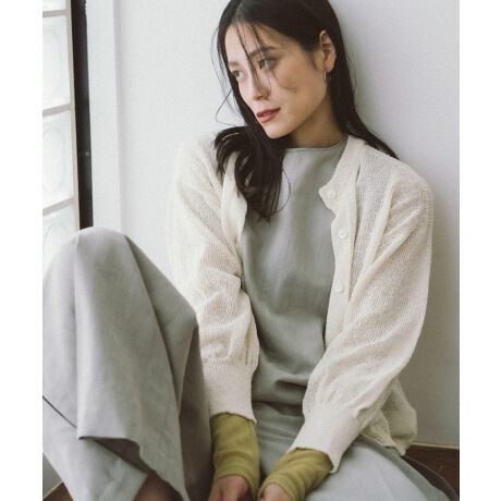 和紙混ホールガーメント9分袖カーディガン-手洗い可-