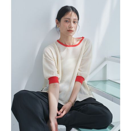 パフスリーブデザインが可愛い、シアーニットトップス。