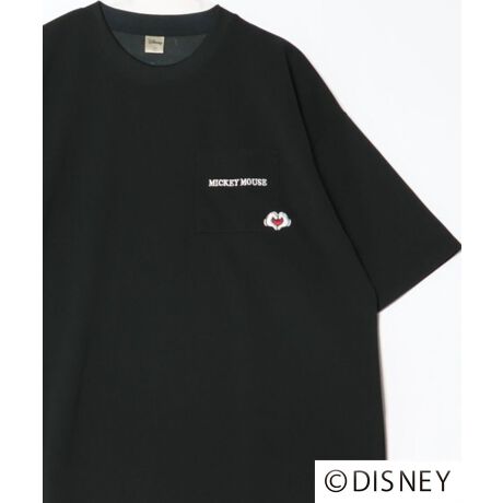 Disney/ディズニー オーバーサイズ ミッキーワンポイント刺繍 ポケット付 半袖Tシャツ レディース メンズ