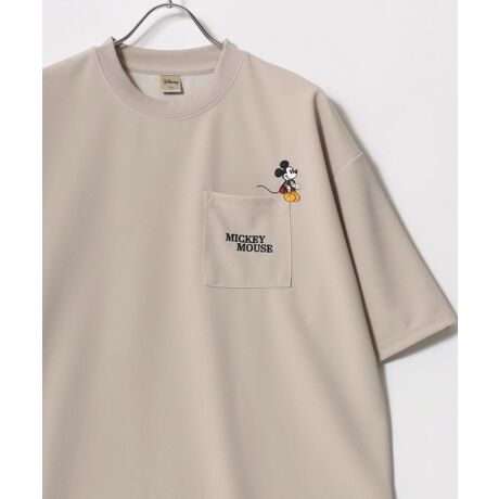 Disney/ディズニー オーバーサイズ ミッキーワンポイント刺繍 ポケット付 半袖Tシャツ レディース メンズ