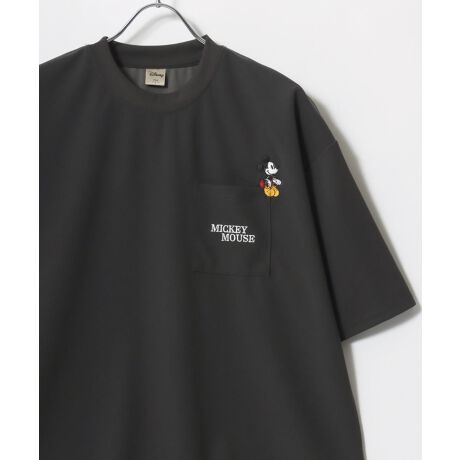 Disney/ディズニー オーバーサイズ ミッキーワンポイント刺繍 ポケット付 半袖Tシャツ レディース メンズ