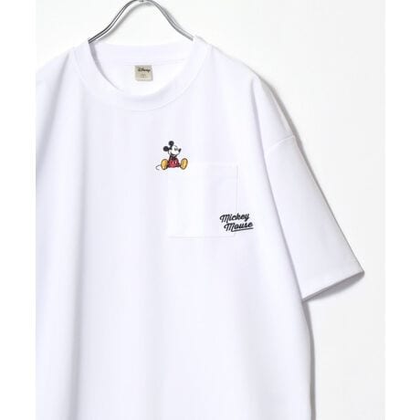 Disney/ディズニー オーバーサイズ ミッキーワンポイント刺繍 ポケット付 半袖Tシャツ レディース メンズ