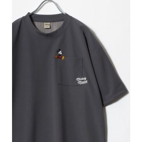 Disney/ディズニー オーバーサイズ ミッキーワンポイント刺繍 ポケット付 半袖Tシャツ レディース メンズ