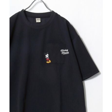 Disney/ディズニー オーバーサイズ ミッキーワンポイント刺繍 ポケット付 半袖Tシャツ レディース メンズ