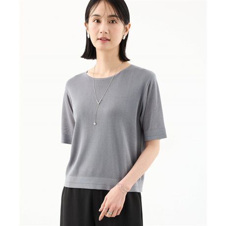 ゆとりのあるラウンドネックがやさしい雰囲気を演出。