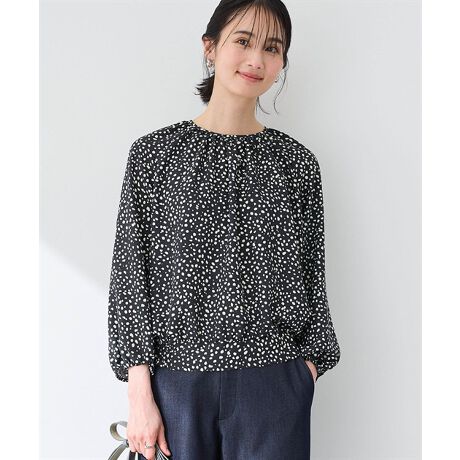 大人びたスタイリングを楽しめる変形ドットブラウス