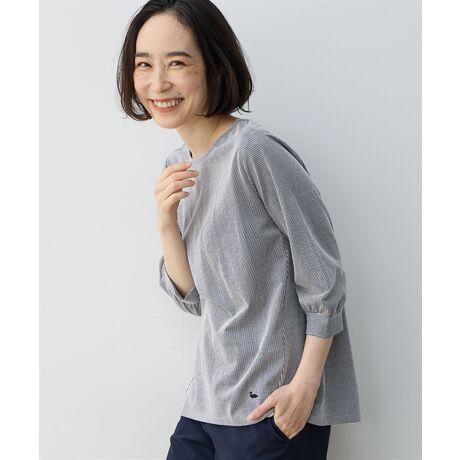 細やかなストライプ柄が上品な雰囲気を放つジャカードプルオーバー