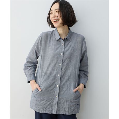 トップスとしてお使いいただくのはもちろん、ボタンを開けて羽織りのように着用するのもおすすめです。