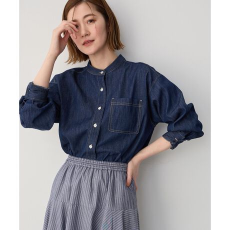 バンドカラーデニムシャツ