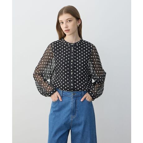 柔らかなふくらみのあるボリュームスリーブもフェミニンさを演出。