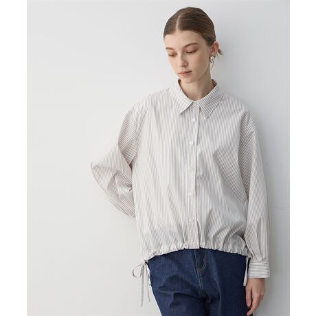 ドロストリボンが甘さをプラスするストライプシャツ。