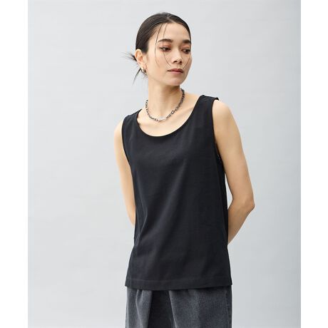 後ろに流れるようなスタイリングを楽しめるステップヘムのタンクトップ