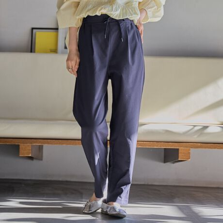 ・カジュアル見えしすぎないよう、ワンタック+ウエスト紐の先端に金具を配しクラス感をプラス