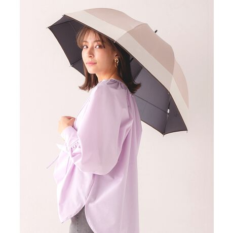 100%完全遮光 UVカット 日傘/晴雨兼用傘 竹製ハンドル パイピング切替 ショート傘