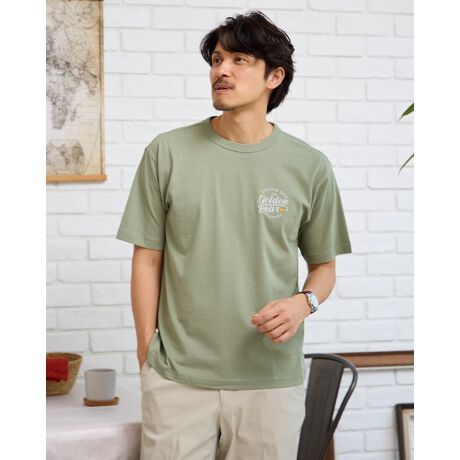 左胸に筆記体ロゴをプリントしたクルーネックTシャツです。