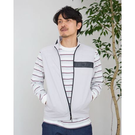 表情豊かなカットソーベストです。前身頃をワッフル生地、後身頃をタック天竺で切り替えました。インナーとしても着用いただけるので、幅広いコーディネートをお楽しみいただけます。