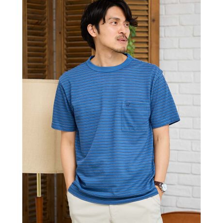 クルーネックのボーダーTシャツです。吸水速乾性に優れた鹿
