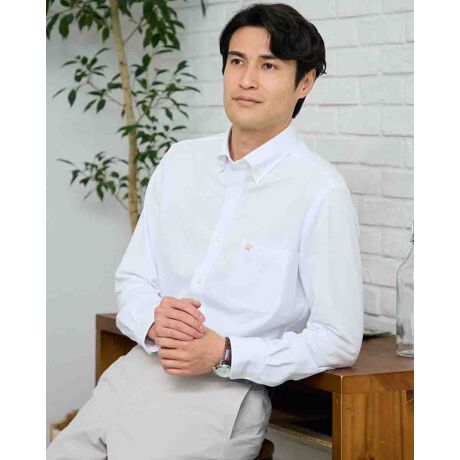 カットソー素材のボタンダウン襟シャツです。鹿の子生地を使用しており、さらっとした着心地と通気のよさが特徴です。着心地が楽なのが嬉しいポイントです。