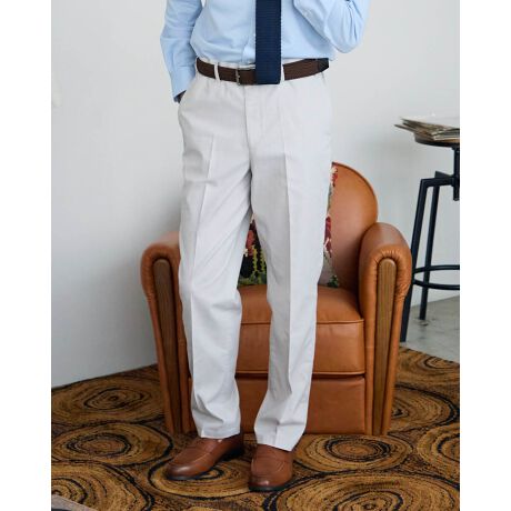 レギュラーフィットのノータックスラックスです。表情のあるドビー織り素材を使用しています。プレス入りでキレイめな表情に仕上げました。ウエスト脇部分にゴムを使用したイージー仕様に仕上げました。