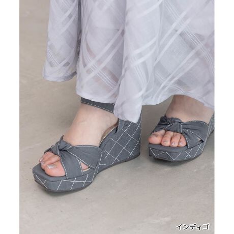【22.5-25.5】リボン×キルティングウェッジサンダル