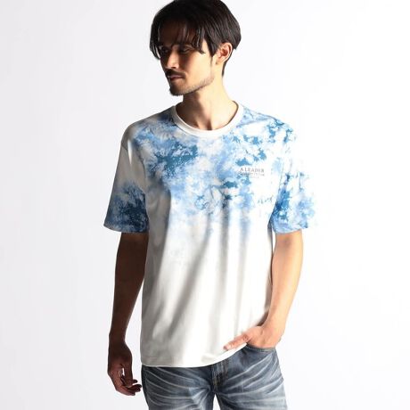 インパクト系総柄プリントTシャツ。昇華転写で生地の風合いを損ねることなく繊細に仕上げています。グラフィックは墨流しの様な大理石の表面に似たマーブルモチーフ、グラデーションを効かせた絞り染め風タイダイ柄、カスレやボカシで奥行き感を出したロゴとチェックのコラージュ柄のアラカルトで展開します。