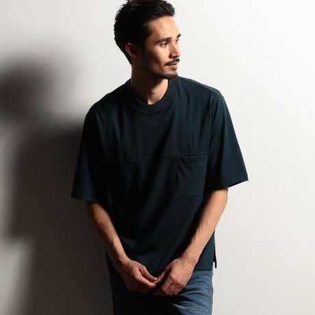 前身の切り替えとスラッシュポケットがデザインポイントのクルーネックTシャツ。衿リブはシェブロン(ヘリンボン)柄をジャカードで表現したデザインリブを採用。シルク混生地特有の上質さ溢れる光沢感と相まって、洗練された印象を与えてくれます。ポケット口にはリエラボロゴ刺繍をあしらいさりげないアクセントに、脇の縫い代には消臭抗菌テープを入れて機能性もプラスしたこだわりの仕上がりです。