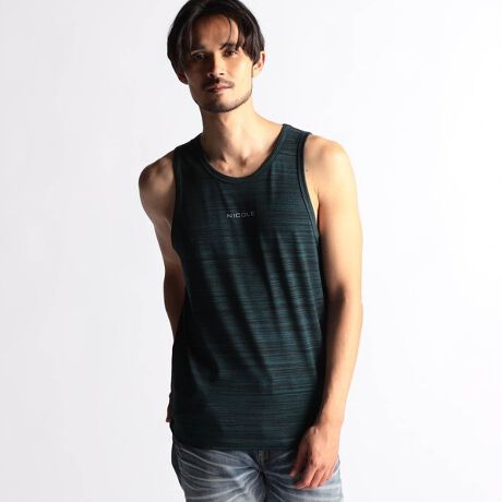 スモールロゴでアクセントを効かせたシンプルなタンクトップ。前下りを46サイズで12cm、48サイズで13cm、50サイズで14cmとクルーネック程の浅めに設定し、レイヤードしやすいデザインにしています。新柄のランダムテレコは縦リブ組織ですっきりとした印象。ボーダー2色は黒スラブ糸を意識したランダムなストーム感が特徴。天竺組織で着やすい仕上りです。