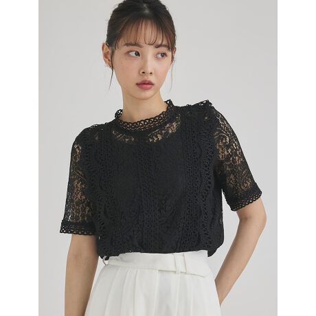 総レースが女性らしい印象のフリルトップス