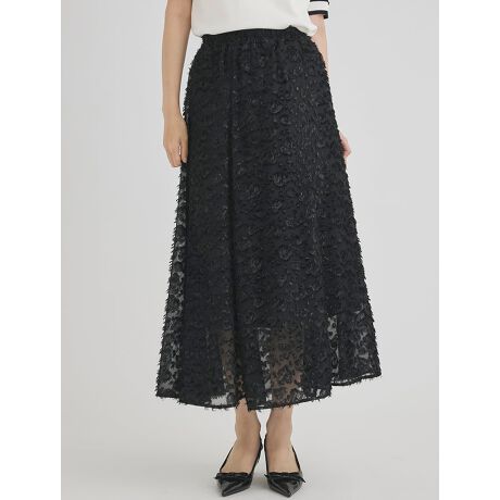 キラキラがさりげないラメのジャカード生地を使用したスカートは、シンプルなAラインでエレガントさ引き立ちます。トップス次第でカジュアルにもガーリーにも仕上がるアイテムです。ウエスト部分はゴム仕様になっているので、ストレスフリーな穿き心地も嬉しいポイントです。