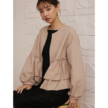 季節の変わり目にぴったりの、軽くて使い勝手が良いナイロンティアードジャケットです。ナイロン素材でありながらティアードデザインを施しているのところがポイントになっていて、カジュアル派もガーリー派にもおすすめしたい1枚です。