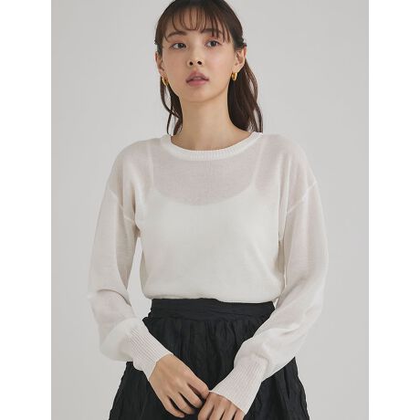 派手すぎないラメ感が、華やかさと落ち着きを演出しているシアーラメニットです。シンプルなデザインながら、パフスリーブと長めのリブはエレガントさも感じます。前後どちらを前にしても楽しめる、うれしい2wayスタイル。おしゃれの幅が広がりそうです。