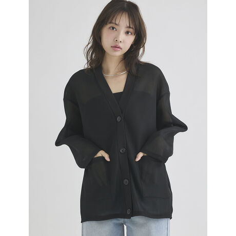 カジュアルな雰囲気もありつつ、透け感で女性らしさもあるVネックシアーダンボールカーディガンです。素材がエアリーで柔らかいシアーダンボールなので着心地も◎。1枚あると便利なトレンド感のあるカーディガンです。