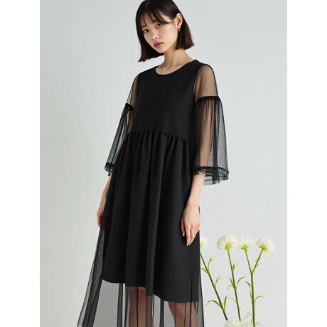 チュールの華やかさもありながら色合いがシックなので、落ち着いた大人の女性の印象に。このセットアップ1つでトレンド感のあるコーディネートが簡単に完成します。チュールとワンピースは別々でも着用可能。お持ちのアイテムと合わせていろんなコーディネートが楽しめます。