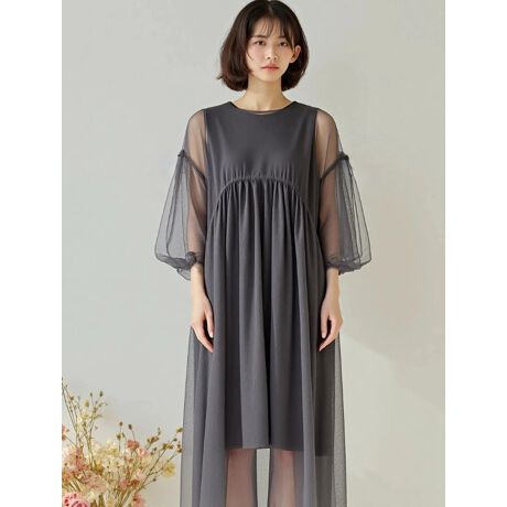 チュールの華やかさもありながら色合いがシックなので、落ち着いた大人の女性の印象に。このセットアップ1つでトレンド感のあるコーディネートが簡単に完成します。チュールとワンピースは別々でも着用可能。お持ちのアイテムと合わせていろんなコーディネートが楽しめます。