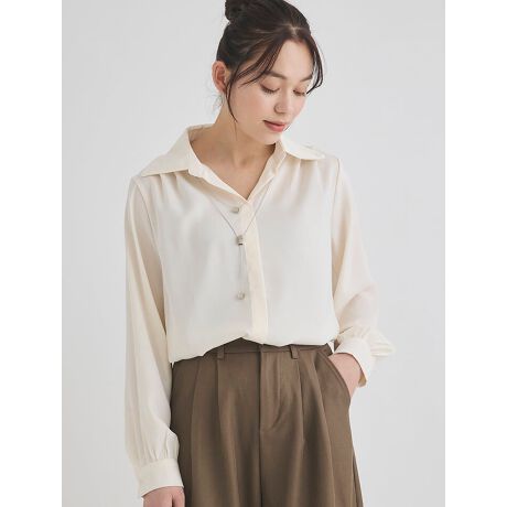 ネックレスがアクセントをプラスするスキッパーブラウス