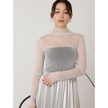 ラメ感が華やかなシアーハイネックトップス