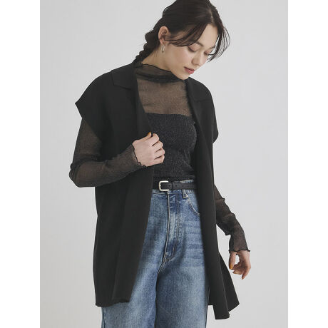 テーラードカラーがきちんとした印象を与えるノースリーブジャケット。ゆったりとしたシルエットが、こなれ感を演出します。ボタンレスのデザインでさっと羽織るだけでサマになり、カジュアルからきれいめまで幅広いスタイリングに活躍するアイテムです。