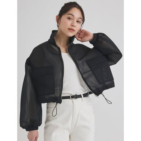 ほどよく透けるシアー感が女性らしい印象のジップアップニットブルゾン。裾に施されたドロストを絞って、シルエットを変えられるのもポイントです。短めの丈感なので、ハイウエストのボトムスやワンピースともバランス良く合わせられるアイテムです。