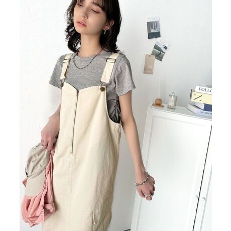 大人カジュアルに仕上げるカーゴデザインジャンパースカート。